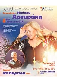 Το Τμήμα Πολιτισμού του Δήμου Αγίου Δημητρίου ανακοινώνει τη νέα ημερομηνία για τη μεγάλη συναυλία-αφιέρωμα στις περασμένες δεκαετίες. Η εκδήλωση, που είχε αναβληθεί τον Φεβρουάριο λόγω κακοκαιρίας, θα πραγματοποιηθεί την Κυριακή 22 Μαρτίου στις 19:00, στην Πλατεία Άρη Βελουχιώτη.