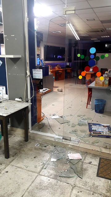 Η μόνη ζημιά είναι η τζαμαρία και δεν υπάρχουν περαιτέρω ζημιές μέσα στο μαγαζί.