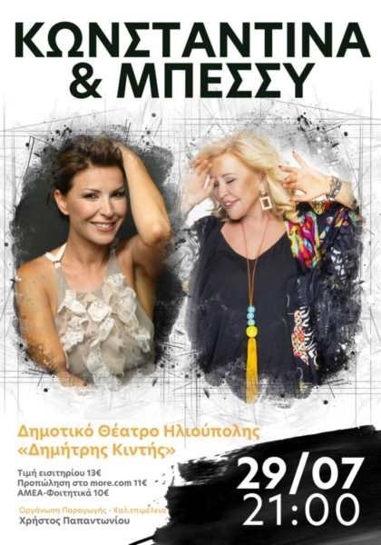 Δυο φωνές δυο ιστορίες: Η Κωνσταντίνα και η Μπέσσυ Αργυράκη σήμερα Τρίτη 29 Ιουλίου στο Δημοτικό Θέατρο Ηλιούπολης